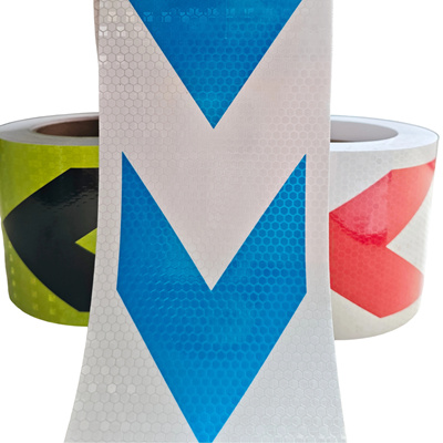 The arrow-shaped prismatic reflective film is mainly used for nighttime reflective warning and direction guidance, applicable to three core scenarios: in traffic roads, it can be attached to guardrails or warning signs with arrows aligned to the driving direction to ensure visibility from 100-200 meters away; for vehicle identification, it can be affixed to prominent positions on the body of trucks, engineering vehicles and other vehicles to indicate driving or emergency directions; for site guidance, it can be stuck on the ground or walls of garages and parks to point to key locations such as exits and fire passages. When in use, it should be applied to flat and dry surfaces, pressed firmly to avoid air bubbles, and high-intensity or micro-prismatic grade products are preferred. Faded or worn films should be inspected and replaced regularly.