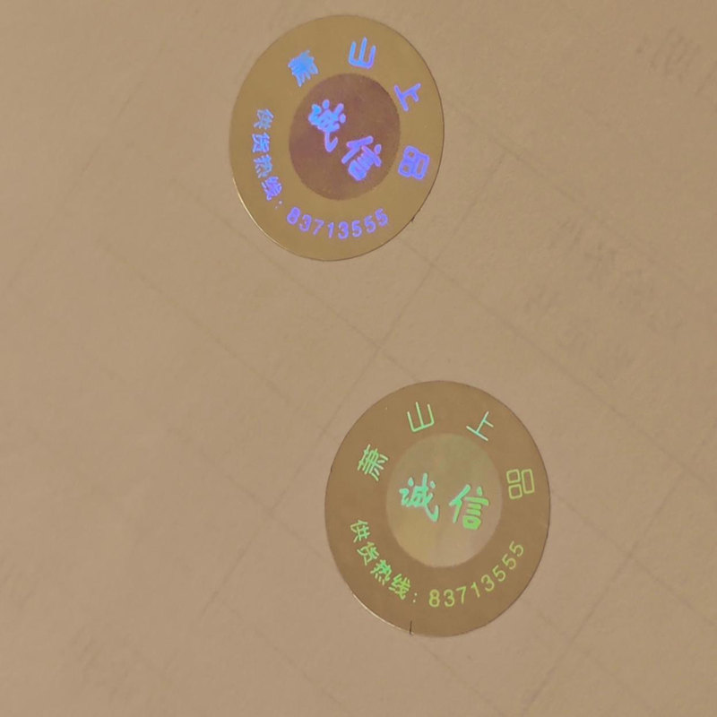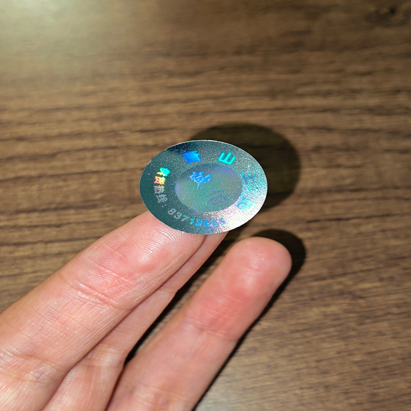The product is 2 cm circle Holographic Security Labels(holographic labels).Holographic Security Labels create colorful, variable optical effects on film via laser holography and diffraction, with appearance shifting by viewing angle to show rainbow textures, 3D patterns or microtext; highly recognizable, they are decorative, anti-counterfeiting and widely used in packaging, certificates, tobacco, alcohol, cosmetics and brand security.This product can be applied directly to the product surface.